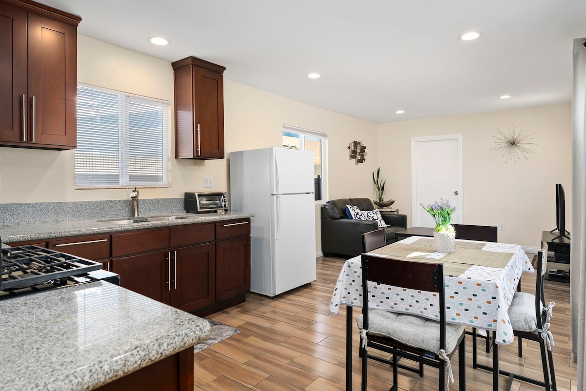 Built from ground up 1BR/1BA house with all new furnishing. 15-20 minutes away to Disneyland, Knotts Berry Farm, Anaheim Convention Center, Angel Stadium, John Wayne airport, Huntington Beach, Newport Beach, Mile Square Park and less than 5 minutes to Little Saigon and Koreatown. Amazing for couples, families with kids under 5, small families, business travelers!