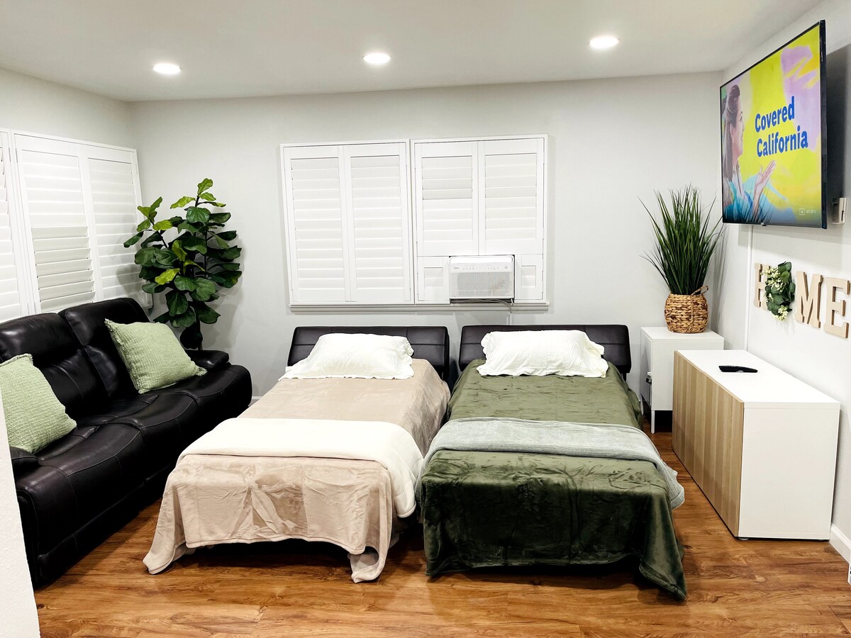 Perfect for short visits or longer stays, our guesthouse offers comfort, privacy, and an easy commute to Disneyland and nearby beaches. We look forward to hosting you and making your stay effortless and enjoyable. The space includes a private entrance, comfortable sleeping area, full bathroom, and a kitchenette for light meals. Fast WiFi, free parking, and easy freeway access make this ideal for families, couples, or longer stays. A peaceful place to relax after a fun day exploring.