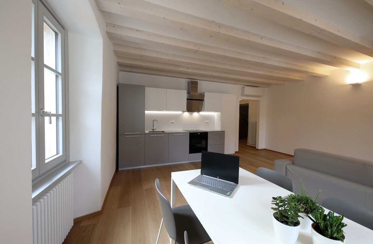 Nuovo appartamento di 70mq con 6 posti letto e posto auto, situato in edificio del 1300 nel pieno centro storico (casa Buzzi). Entrata direttamente da via Roma, cuore pulsante della città. Ideale per chi desidera rilassarsi avendo tutto comodamente a portata di mano: bar, ristoranti, supermercati, terme e piste de sci. È presente all'interno della corte un ampio giardino ideale per pranzi, cene e aperitivi all'aperto.