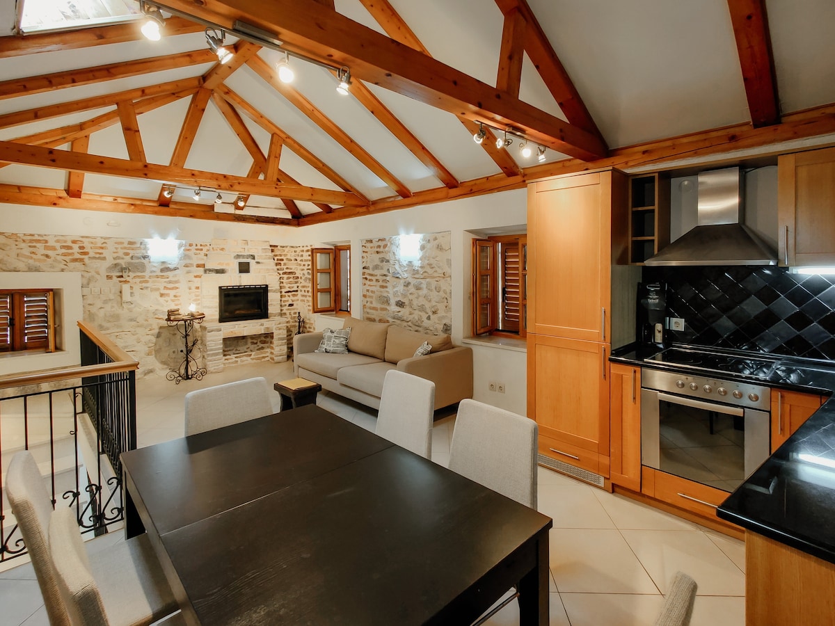 Elegant and charming three-floor medieval heirloom house with preserved antique charm and modern comfort with full privacy. This cosy place in the heart of Kotor Old Town features beautiful views from its spacious vintage living room with a decorative fireplace. Two bedrooms with ensuite bathrooms, fully-equipped kitchen, dining area, AC will make your stay as comfy as possible. Tucked away in a picturesque walkway yet centrally located. A few minutes from bus station, beach and restaurants