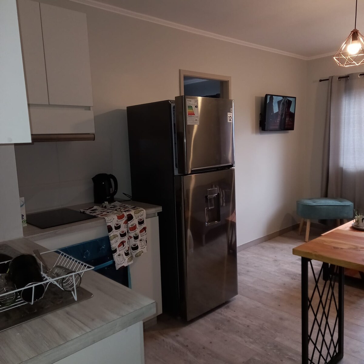 Spectacular apartment. With the best view of Lake Llanquihue. It is a new, modern and exclusive accommodation. With a bedroom and a living room, dining room and a fully equipped kitchen. Everything is designed to give you the best stay and the greatest comforts. The location is unbeatable, just a few steps from the Llanquihue Lake beach. With a beautiful view of the "Osorno and Calbuco" volcanoes. A very quiet and safe condominium.