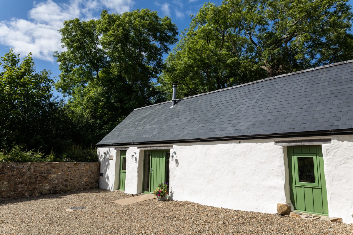 Romantic Pembrokeshire cottage in beautiful 3-acre grounds with sauna, natural swimming pond (rain dependent), games room & kayaks. Hill walks on the doorstep, stunning beaches & cliff walks nearby. Stargaze from a comfy king-size bed. Snuggle up by a wood-burning stove (free wood). Large bathroom with bath, shower & underfloor heating. Well equipped kitchen with coffee machine. Covered outdoor seating area with firepit & bbq. Fibre internet, smart TV (Netflix etc). 2 well-behaved dogs welcome.
