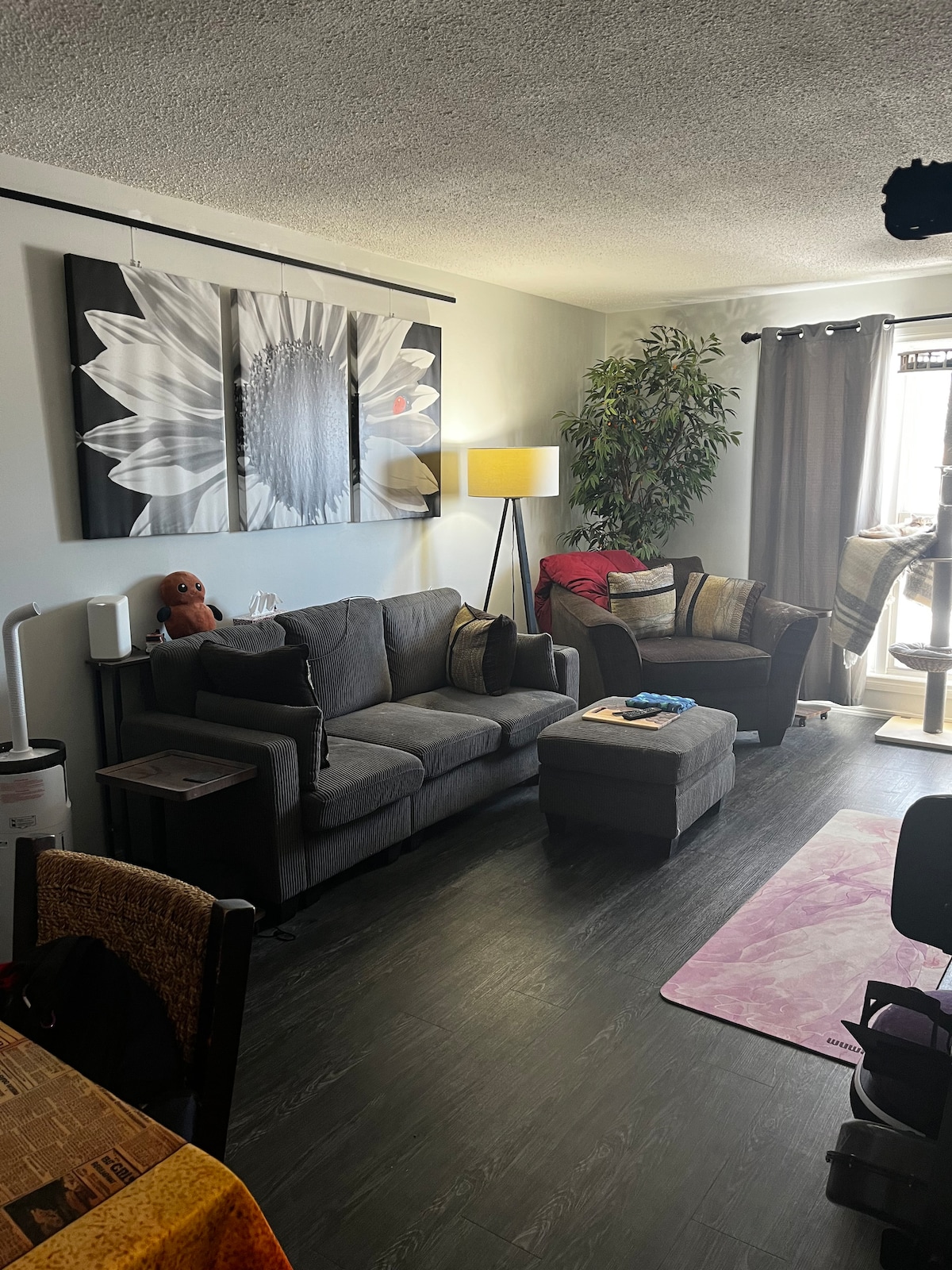 The whole group will be comfortable in this spacious and unique space. Perfect for large family getaways, or long work stays, this townhouse is packed with all the amenities you need: bunk beds, large living area, fully stocked coffee bar, large kitchen table, complimentary toiletries, quiet neighbourhood yet, and 2 free upfront parking stalls with spacious street parking. Bring the whole family to this great place with lots of room for fun.
