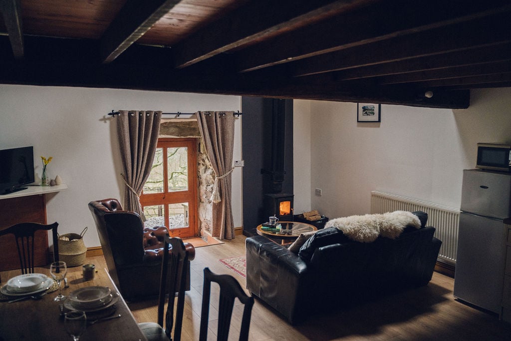 Set beside the apple orchard at The Old Sheep Farm in Eryri National Park (Snowdonia), The Hayloft is a dog-friendly, one-bedroom crog-loft hideaway a short drive from the coast. Exposed beams, a wood-burner and a freestanding roll-top bath give the cottage a warm, settled feel, while stunning views stretch across the hills towards the sea. A calm, characterful and luxurious place for slow mornings, long walks and unhurried stays.