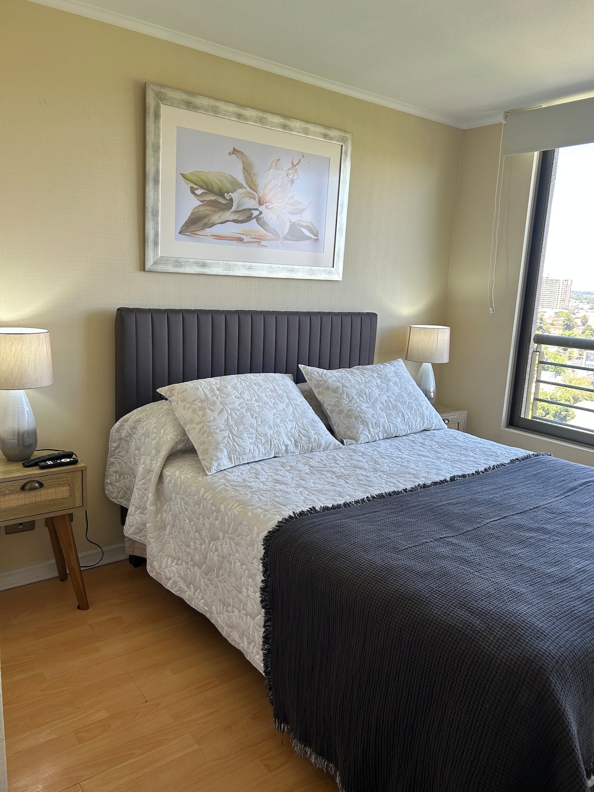 Relax in this quiet and elegant space, overlooking the mountain range, fully equipped, blackout curtains in bedroom and living room, heater and air conditioning, own parking inside the building, concierge at the entrance of the building, Univ. Catholic University is an 8-minute walk and Inacap is an 8-minute drive away, within walking distance of Mall Plaza and Jumbo and Lider supermarkets, pharmacy, minimarket and notary half a block away, restaurants and pizzerias nearby.