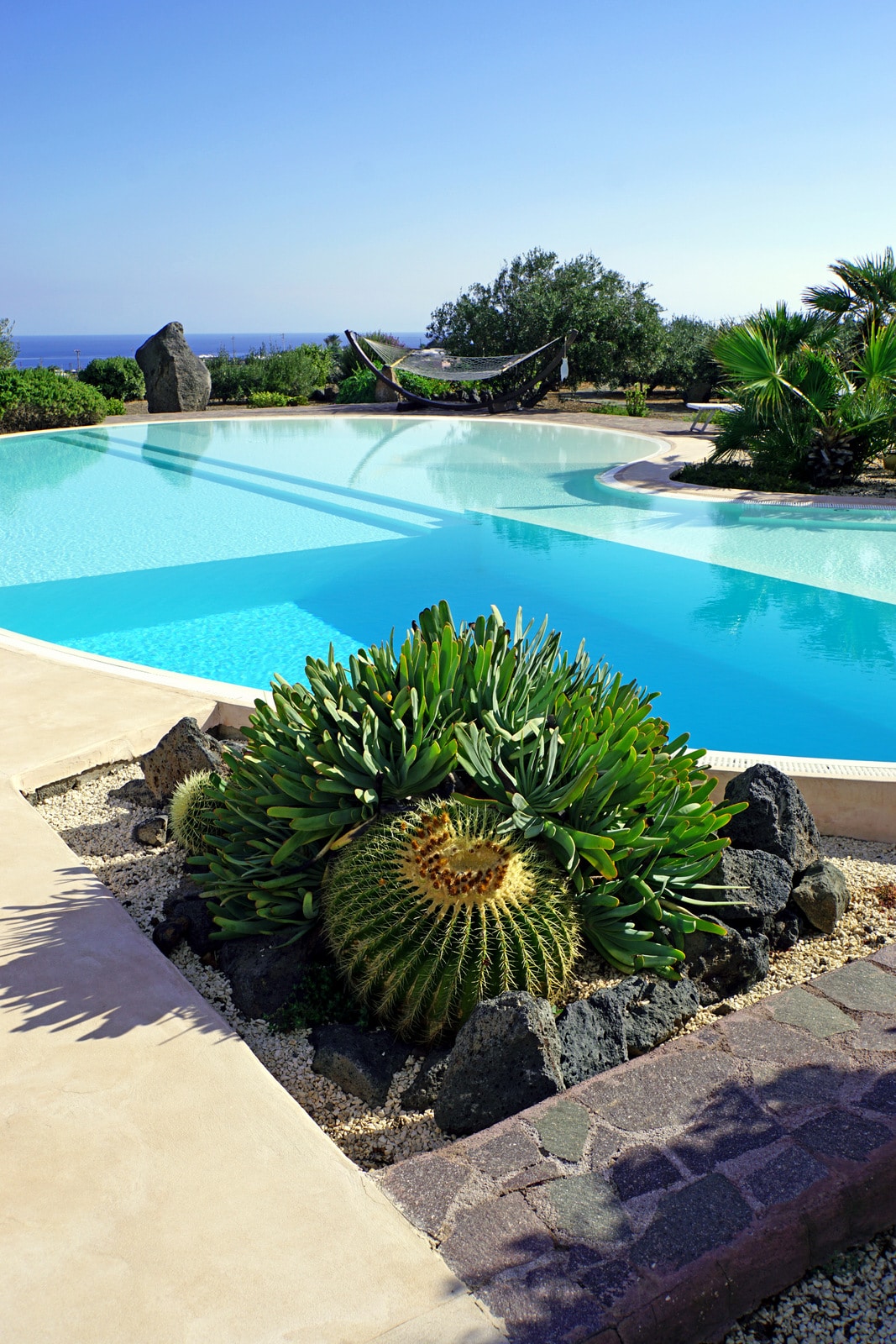 Immersed in the picturesque land of Pantelleria, the Luna dammuso offers a welcoming and relaxing retreat. With a private pool that blends into the marine horizon, the breathtaking view captures the gaze towards the turquoise sea. Just 1.3 km away are the enchanting coves of Bue Marino. While 5 km away, set in a unique landscape, stands the volcanic lake of Venus; its natural open-air spa offers a unique experience thanks to its white sand and thermal muds.