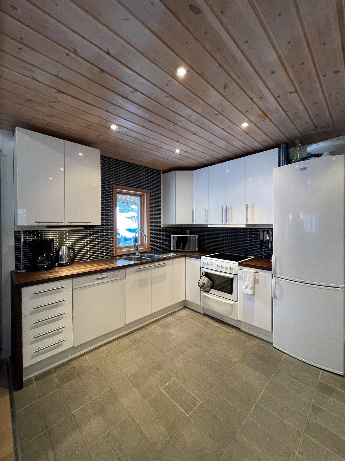 Comfortable family accommodation with 8 beds, a cosy fireplace and sauna. Parking for 2 cars. Proximity to nature, the alpine ski resort, cross-country/hikning/biking trails. Newly renovated kitchen+bathroom (2021). Dishwasher, microwave, Wifi, AppleTV. Plenty of summer/winter activities: downhill biking, hiking, swimming, fishing, skiing, ice fishing, skating, ride a snowmobile or tracked vehicle. The village (3 km) offers good restaurants, food store and sports shop, open all year round.