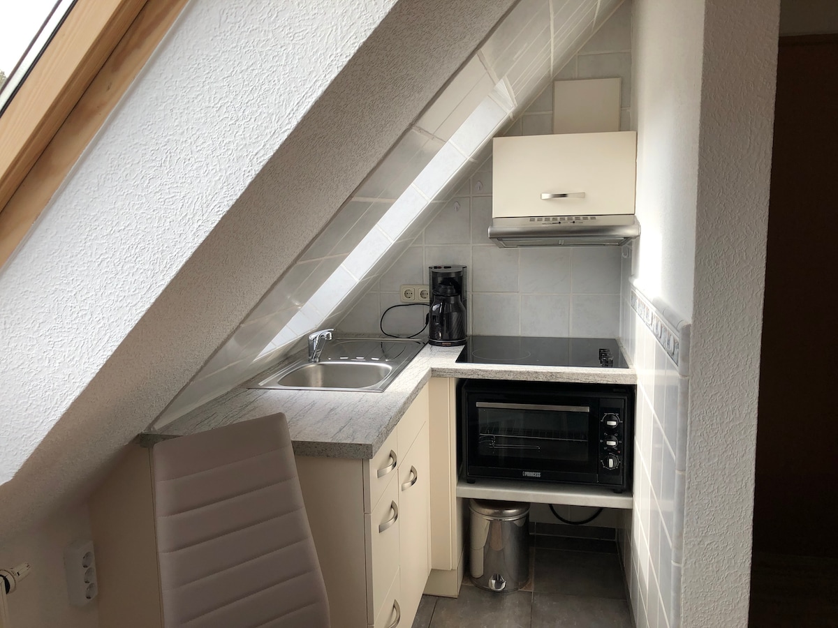 Country house on two levels with 65 sqm! Fully equipped eat-in kitchen, bathroom - toilet, walk-in shower, washing machine, clothes rack; living/sleeping combination in the open attic, terrace with barbecue, garden use by arrangement, parking space for one vehicle, storage space for bicycles. 2x extra beds possible €20/night/person from 5 years. Tips for excursions can be requested if necessary, an information folder is available - otherwise I proceed freely according to the motto "Everything is possible, nothing is required!"