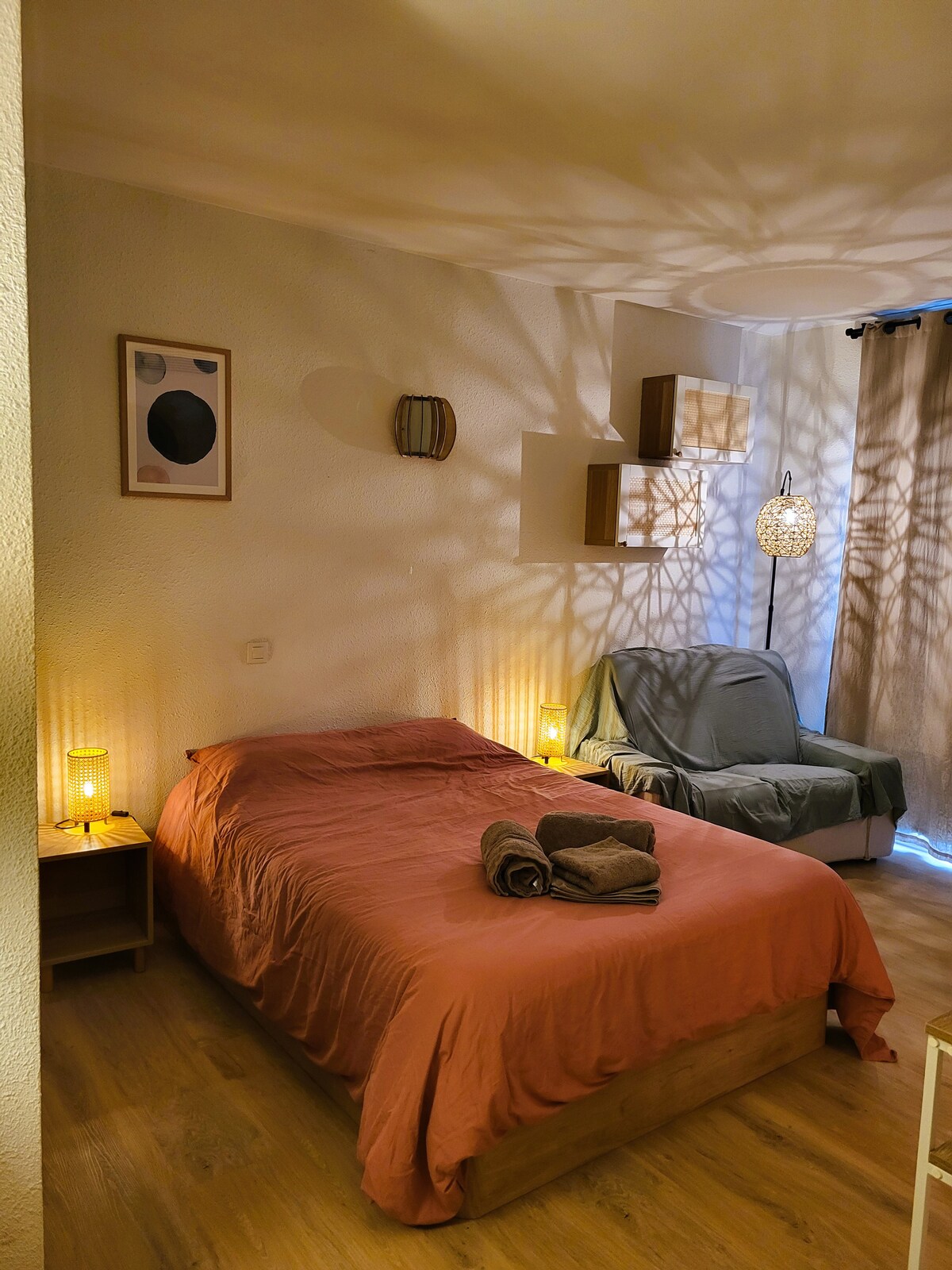 South-facing studio on the 2nd floor of a beautiful luxury building (no elevator). Located on the courtyard side, in a shopping street, you will be a 10-minute walk from the city center and tourist activities. The thermal spa is a 15-minute walk (5-minute drive). Wi-Fi box in the accommodation (fiber) Street parking at the foot of the building (part of the street is free, part is paid).