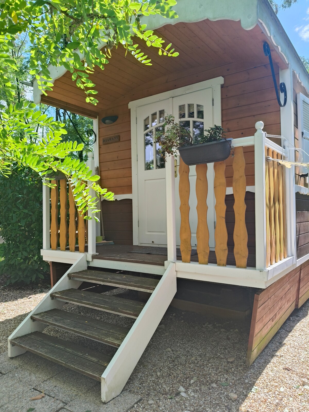 Accommodation both in the countryside and in the city. In a wooded park, near the indoor/heated pool from March to the end of October. Well insulated, heating, kitchenette, bathroom/toilet. Only trailer in France to have a jacuzzi. You can rent by the night or by the week. Without jacuzzi €85 per night for 2 people without breakfast