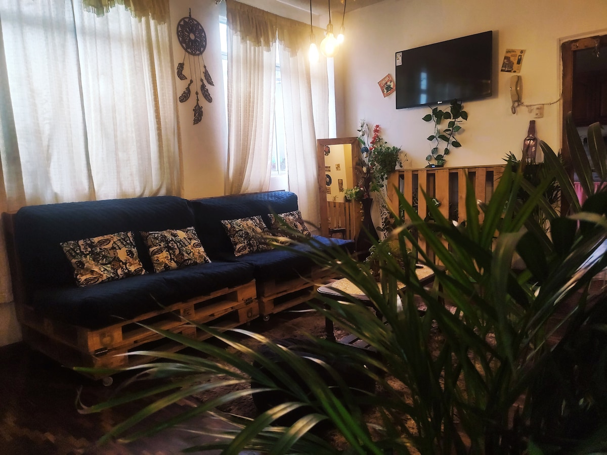Cozy remodeled apartment in downtown Loja. It has 2 bedrooms (4 beds), 1 bathroom, a living room, a dining room, and an equipped kitchen. Ideal for families or groups of up to 5 people. Includes WiFi, hot water, TV, workspace and all amenities. Perfect location, close to shops, restaurants and iconic sites. Comfortable, clean, and functional space to enjoy your stay in the city. 5 minutes from UTPL, you can get to your events quickly, easily and safely.
