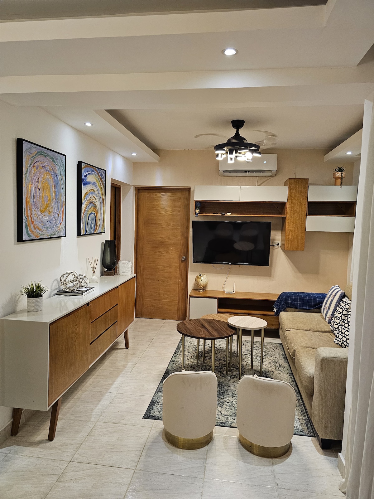 Cozy and comfortable apartment with a swimming pool, playground area, and 24/7 security. Fully equipped with everything you need for a quiet and safe stay. Located just 30 minutes from Punta Cana Airport and 20 minutes from La Romana Airport. Just 5 minutes from downtown and 30 minutes from the beaches of Bávaro (Punta Cana) and Bayahibe. SPACE - 3 bedrooms - 2 bathrooms - Kitchen - Living room - A dining room. - Balcony - A laundry area - Two parking spaces