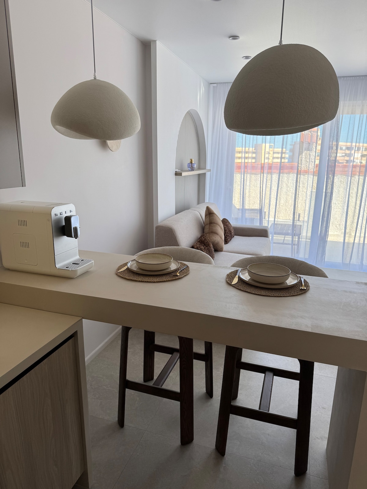 Welcome to this stunning 2-bedroom, 2-bathroom apartment. Designed for comfort and style, this newly built home offers uninterrupted sea views from every corner, whether you're relaxing in bed, cooking in the kitchen, or enjoying a drink on the terrace. -High-quality finishes & modern design -Spacious open-plan living area with floor-to-ceiling windows - Private balcony with direct sea views -Secure building with elevator and beach access just steps away. -Parking