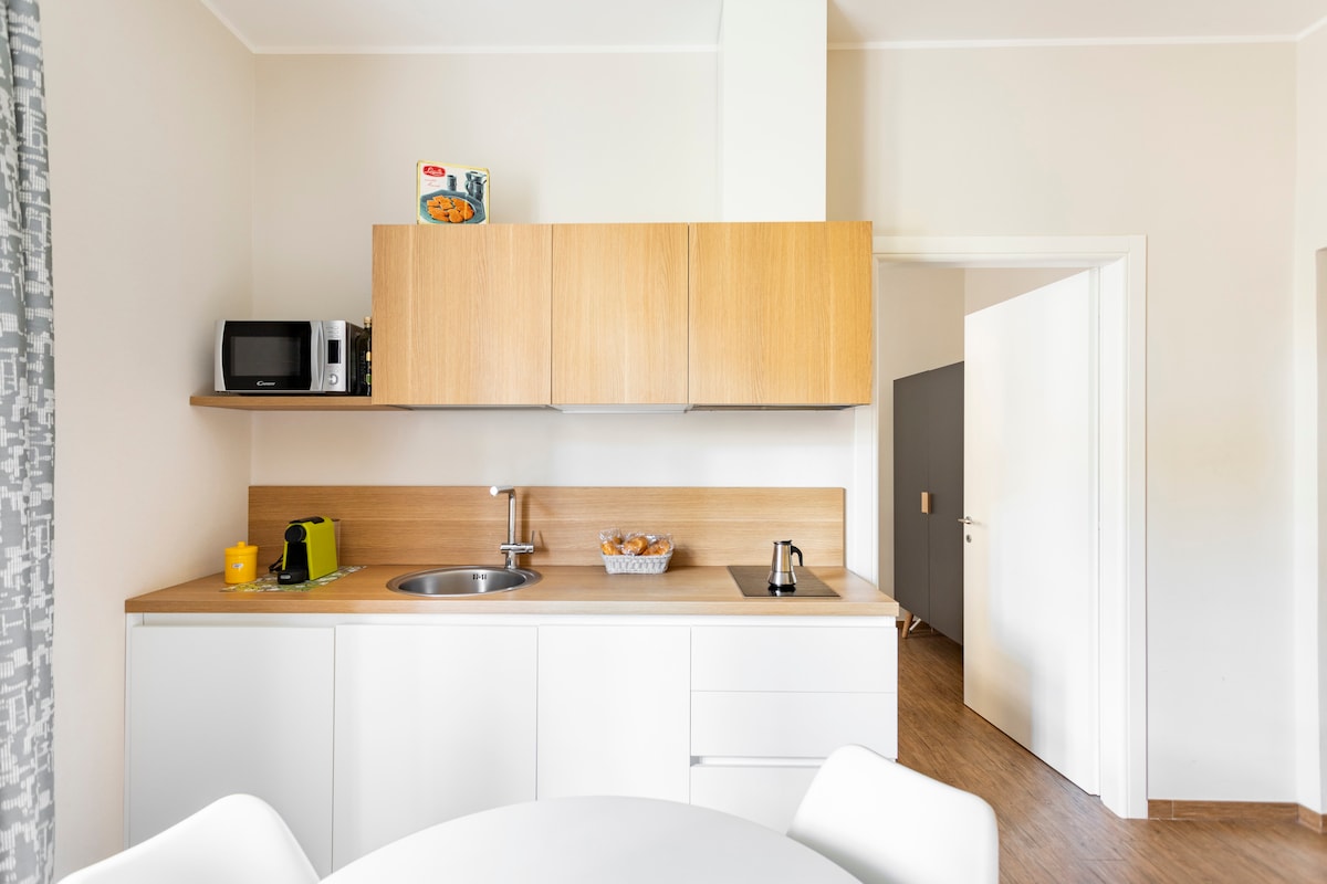 The apartment is located on the ground floor of an Art Nouveau house built in the early 1900s, free of architectural barriers with a bathroom also suitable for people in wheelchairs. The building has been completely renovated respecting the characteristics of the time and divided into 6 apartments for a total of 18 beds. The all-new and vintage-style furniture keeps the slightly retro flavor of the house intact, making each space special and unique.