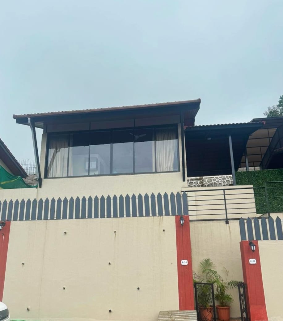 It's a beautiful space with amazing open views of mountains ,tree tops,very close to nature ,wake up to birds chirping ,clouds surrounding your senses, feel the silence and serenity. Planning of this space is open so living indoors you get a feeling of being outdoors ,surrounded by natural beauty, high ceiling heights, long french windows,along with a deck and two large terraces attached to the two bedrooms with lovely views.