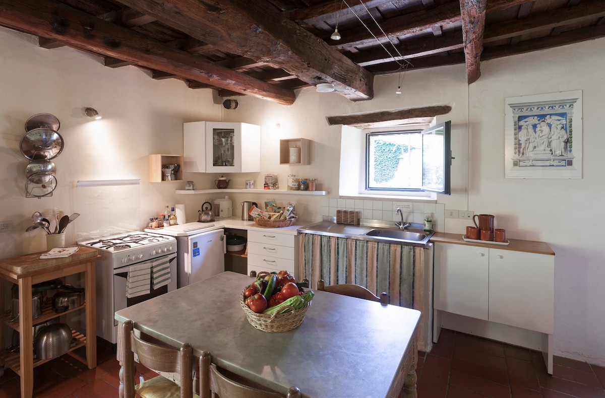Podere Vergianoni is an ancient and authentic farmhouse dating back to the 17th century located in the beautiful hills of Chianti in Tuscany. The apartment is impeccably furnished in the traditional local style of old Tuscany: ancient wooden beams, terracotta floors, and unique furniture. In the large outdoor courtyard, you'll find a large swimming pool on a panoramic terrace at your disposal, overlooking the valley with breathtaking views of vineyards and olive groves, where you can enjoy spectacular sunsets.