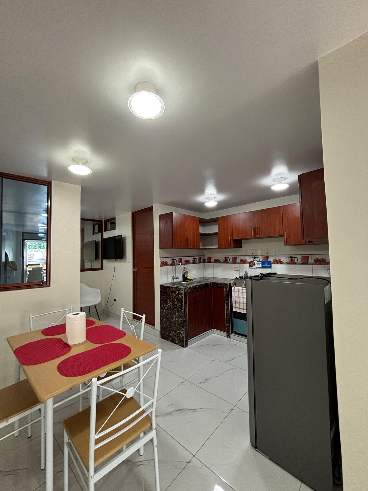 Apartamento de estreno, tranquilo y espacioso con wifi de fibra óptica (alta velocidad). Gran jardín exterior con áreas comunes para trabajar o descansar. Habitación con cama de 2 plazas y sofá cama. Posible agregar una cama de plaza y media. Mueble para trabajar y closet espacioso. Baño privado con excelente presión de agua, cocina amplia equipada con frigobar, cubiertos, platos y ollas. Mesa de comedor. A 10 min del centro de la ciudad y aeropuerto en transporte público (motocarro o taxi).