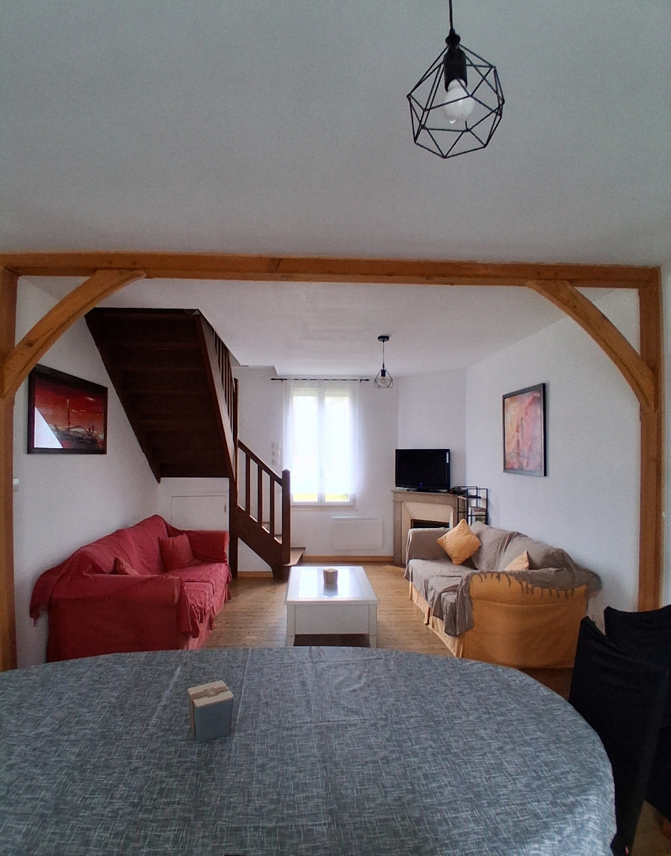 Come spend a few days in our small town house, in the heart of a peaceful village, close to the Canal d'Orléans. Upstairs is a mezzanine, a double bed and a shower room. On the ground floor, an equipped kitchen, with dishwasher, fridge, electric oven, ceramic hob, kettle, toaster, coffee maker, open to living room with sofa bed, TV, Wi-Fi. Outside, an enclosed garden with table and chairs and a barbecue. Bed linen and bathroom linen included.
