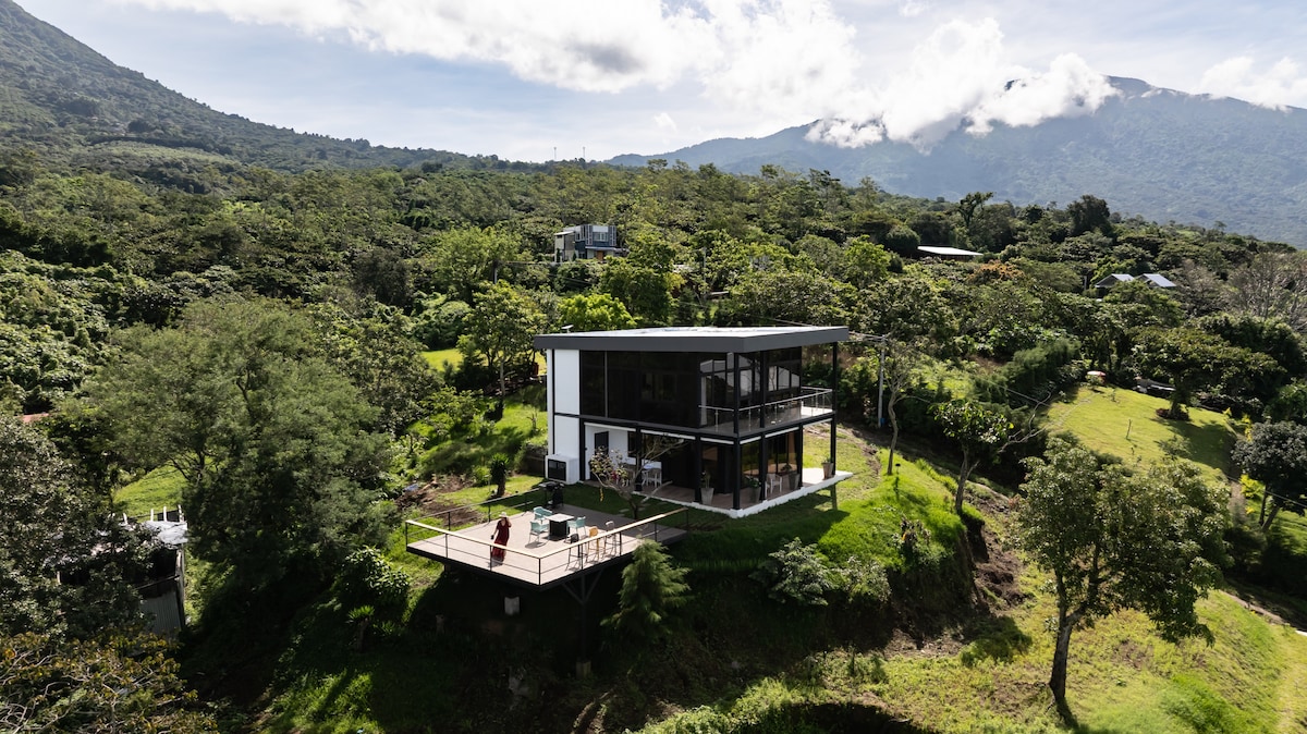 Hospédate en Volcano Cabin y amanece con los volcanes Izalco, Santa Ana y Cerro Verde naturalmente enmarcados en tu ventana. A 15 minutos del pueblo de Juayúa, esta cabaña acomoda a cinco personas. Sus dos recámaras, con espectaculares vistas infinitas, tienen una cama queen. Además, la cabaña cuenta con una sala con sofá cama, una cocina completamente equipada con barra y comedor, espacio para barbacoa y ofrece acceso libre a las áreas comunes del complejo que incluyen jardines y piscina.