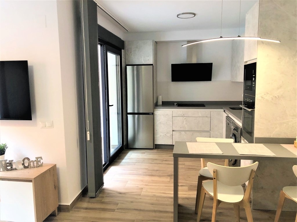 Enjoy a stylish & beautiful new penthouse in one of the most desirable locations. Only 5 min walk to the beach. Situated in an excellent area with all amenities, Mercadona, restaurants, shops, train station, this penthouse is the perfect combination of comfort and luxury. The real jewel in the crown is the spacious 20m2 terrace, a perfect place to enjoy panoramic view. There is one double bedroom and living room with a double sofa bed, plus a modern bathroom with shower.