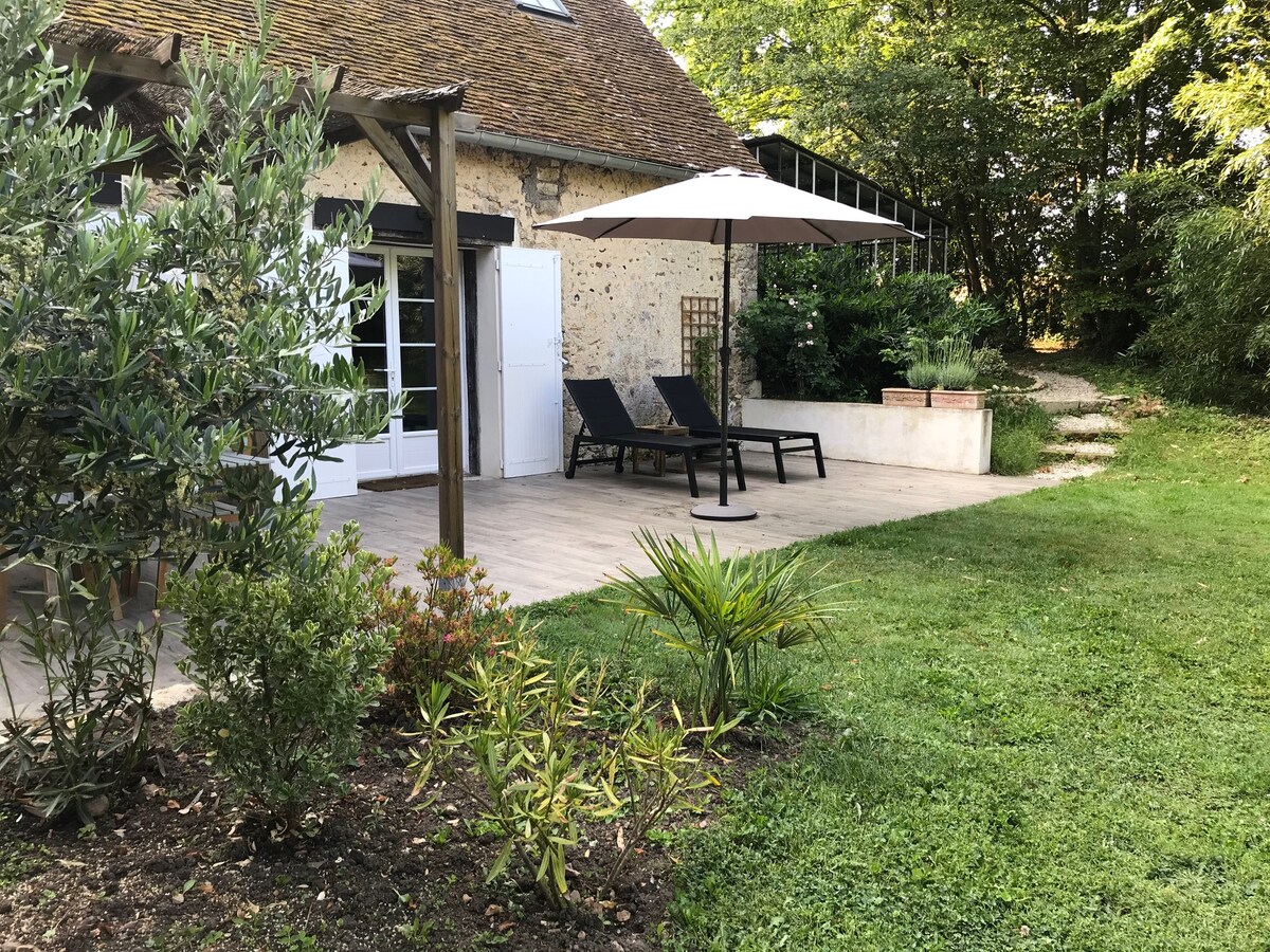 Come and get a breath of fresh air and relax in our 2* rated gîte. The Ô Lunain gîte, a 40 m2 house located in Nonville, a village in the Lunain Valley between Fontainebleau, Nemours and Morêt Sur Loing. Peaceful haven in a property with 4 hectares of garden, woods and river. We live on site in another house, we will be happy to host you. Electric heating and wood-burning stove for those who want it. Not recommended for children under 10 years of age for safety reasons (river).