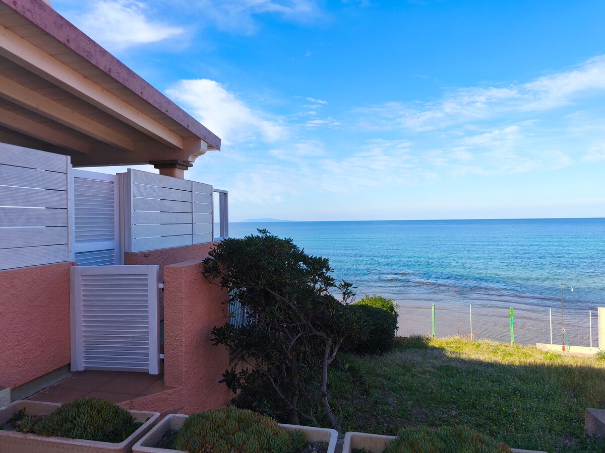 Panoramic apartment overlooking the sea with direct access to the beach, two bedrooms of which: one with a double bed, the other with two single beds that, if necessary, can be joined to become a double bed, large room with a cooking area, bathroom, air conditioning, WIFI, outdoor shower, unique location with all comforts and a veranda of over 30 square meters overlooking the sea, close to Castelsardo and its marina, close to all services. Possibility of paid service, sheets and towels.