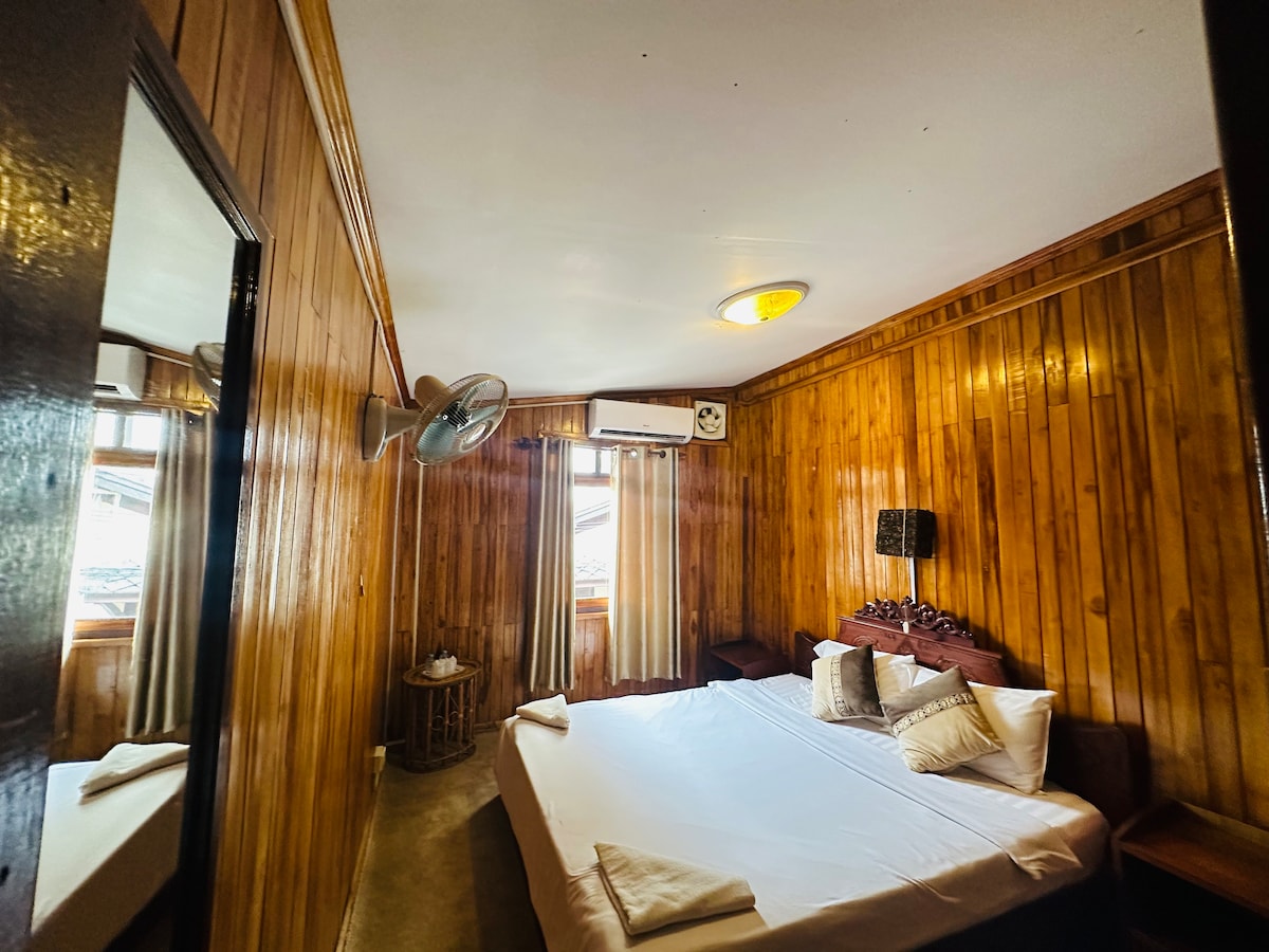 Location location and location, just step out the door and everything you want to explore will be right before your eyes; Our Guest House at city center of Luang Prabang old town, next to night market street and national Museum; Our Room with Wifi ,AC, Fan and quiet area; We build the Guest House like Laos style with wood at wall and floor; we also clean room every day for you. Welcome you to Luang Prabang and we would love to make you love Luang Prabang like us!