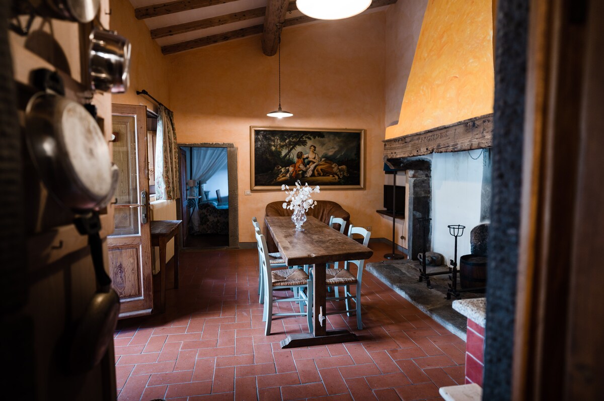 A unique experience in a historical dwelling located in the Chianti region. This medieval castle is situated in a strategic position, surrounded by the major Tuscan touristic attractions. The suite is at the entrance floor level: double bedroom with bathroom, sofa bed for two people, kitchenette, fireplace.