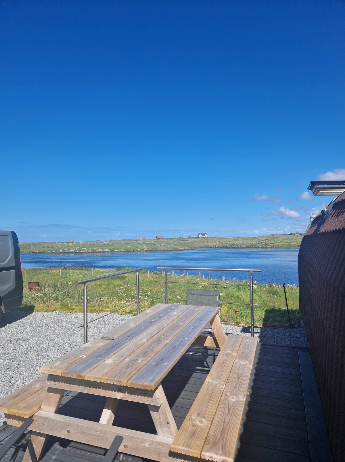 Welcome to our wee pod, Birdsong. Built by local tradesman, John Angus Murdoch, our pod is spacious, well presented and offers everything you need for a comfortable stay. Situated in the quiet village of Lochboisdale, just a stones throw from the ferry terminal. Birdsong is a fantastic base for exploring our stunning landscapes and wildlife. Enjoy the splendid sunsets from the decking and wake up to the sound of beautiful birdsong. This is one of two glamping pods at Croftend Glamping.