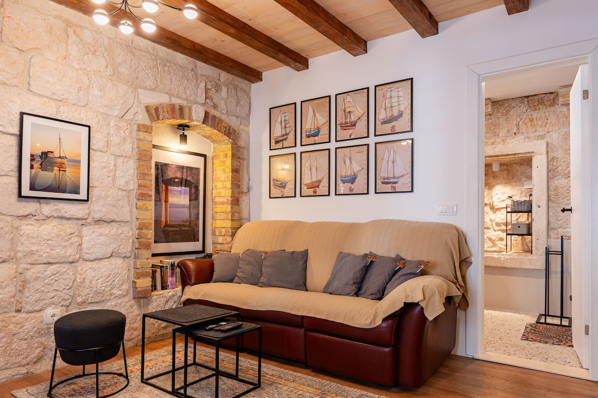 Discover a blend of ancient allure and modern luxury in our 35m² Korčula apartment. Nestled in the heart of the Old Town, right beside the storied Kanavelic Tower, this charming space boasts authentic stone walls, evoking tales of yesteryears. Though it radiates old-world charm, rest assured, it's equipped with contemporary comforts: 2 ACs, 2 TVs, BT soundbar, dishwasher, washer, and dryer. Dive into Korčula's rich past while indulging in today's conveniences in this enchanting retreat.