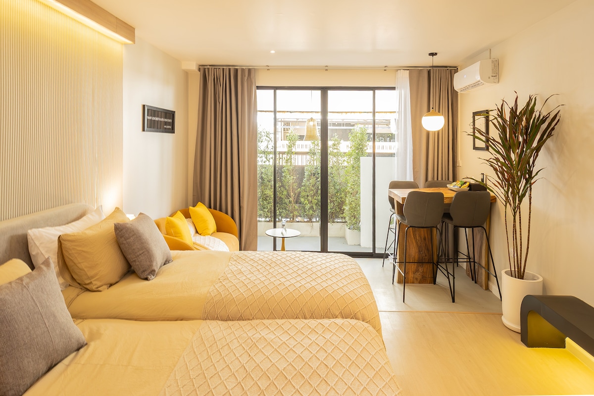This centrally located studio apartment provides a warm, inviting atmosphere in a stylish Bangkok's mid-century setting—perfect for travelers seeking a cozy home away from home. Experience comfort and charm in the heart of the city. Be sure to check out our other listings at the same location on our profile!