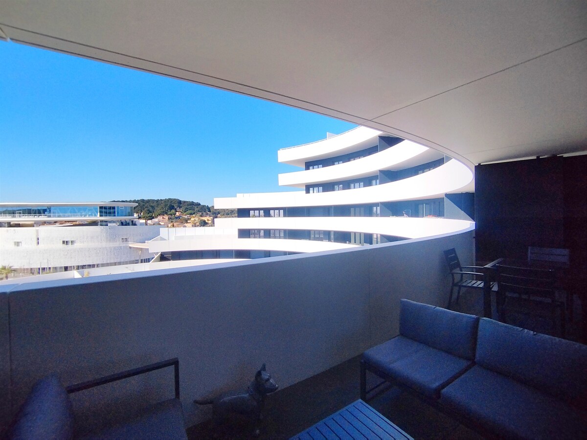 Pleasant 45 m2 apartment, 2 rooms + mezzanine. Spacious and bright, facing the sea, air-conditioned, 3rd floor elevator. Superb panoramic view of the sea, Fort Brescou and the outer harbor, not overlooked. Living room with large bay window overlooking south-facing terrace, out of sight, motorized awning and garden furniture. Kitchen and shower room renovated in 2023. Bedroom with large 160 cm bed. Mezzanine upstairs with 2 90 cm beds. Free secure parking.