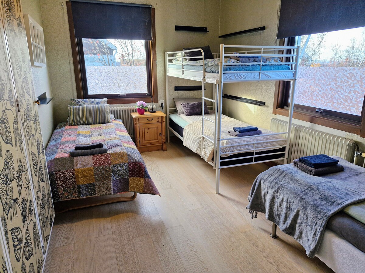 Dina värd - Elisabeth med familj bor i huset. På 250m avstånd finns en matvarubutik, COOP, med generösa öppettider. Huset ligger nära gamla centrum. Butikerna från centrum har flyttats gemensamt och har nyöppnats den 1 september 2022, och befinner sig ca 3 km österut. Busshållplats finns på 350m avstånd, vid sporthallen - vilket är det enklaste sättet att ta sig till det nya centrumet. Vill du ta en trevlig promenad till nya centrum, så tar det ca 45 minuter.