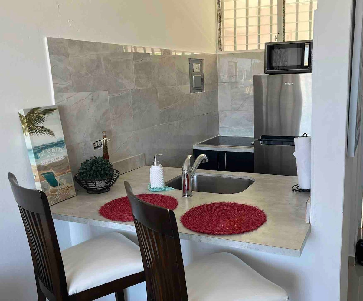Beautiful studio nicely furnished to please everyone. The property is a house divided into 3 apartments in the first floor, two facing the beach and one on the back. This is the one on the back. Due to COVID restrictions parties are not allowed and only guests are allowed in property. The place has bath towels, beach towels and beach chairs, shampoo, conditioner, bath gel and hand wash. We have a big screen Tv, just use your Netflix account or anyone you like