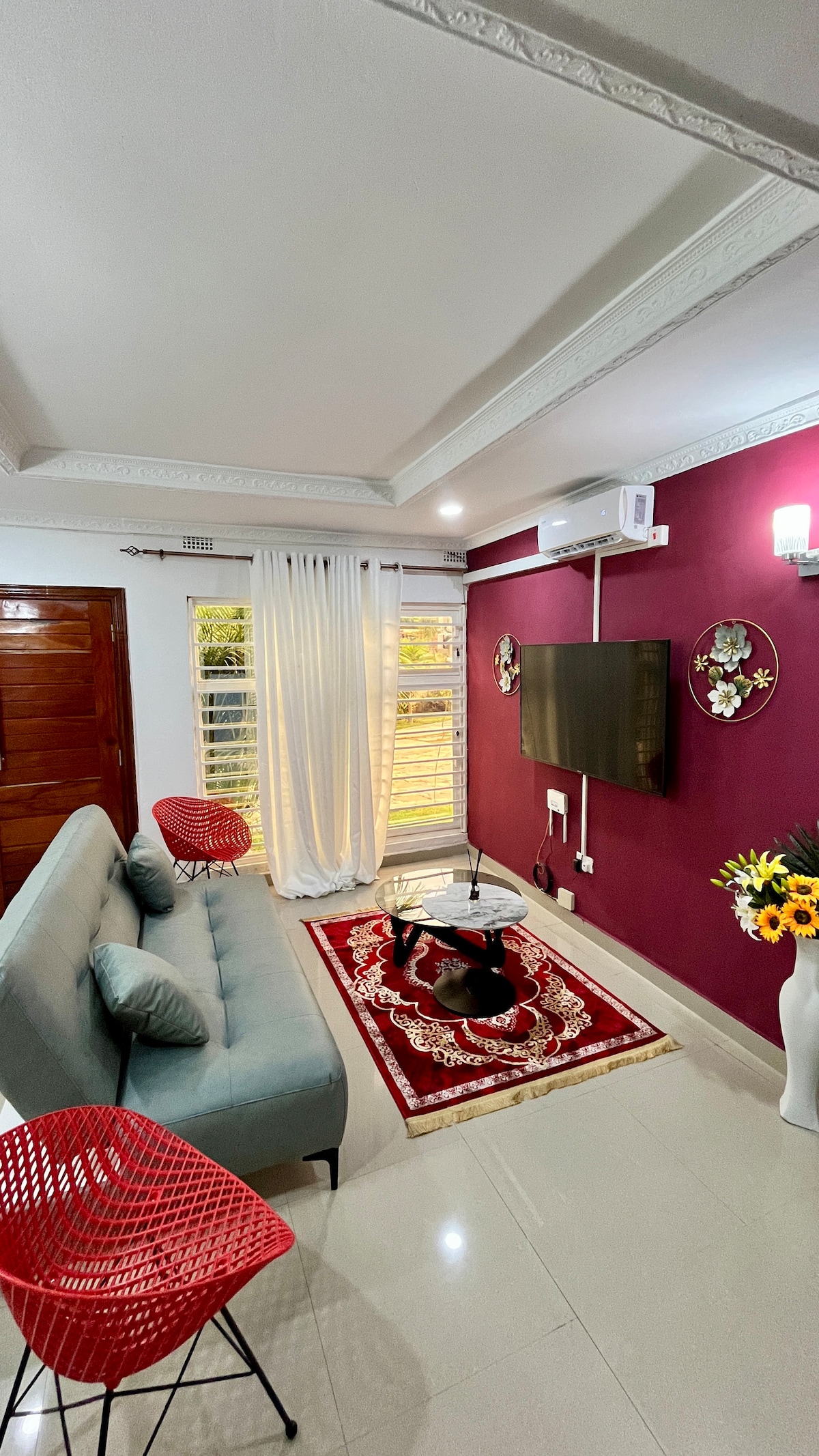 Modern, private, and perfectly located! Enjoy an LG Dual Inverter AC, LG OLED Evo AI 55" TV (2025 model) with prime video. Netflix, YouTube etc. Starlink WiFi. 2m orthopedic hybrid bed, 24/7 power, hot water, a solar iron, and a full kitchen with gas stove, double-door fridge, bar stools, and cocktail glasses. Relax in a cozy living room with a ceiling speaker, workspace, and beautiful couch. Just 5–10 minutes from six malls. You’ll love it here. Book now!