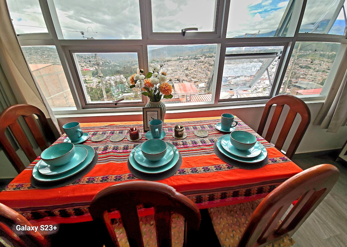 "Dpto de 2 habitaciones con vista panorámica en el corazón de Chachapoyas" - 3 camas matrimoniales - capacidad desde 1 a 6 personas. - tv smart 70" _ 4to piso - cocina con utensillos. - Disfruta de una estancia cómoda y relajante en nuestro dpto con vista panorámica a la ciudad. Nuestro alojamiento se encuentra estratégicamente ubicado cerca de los rest., Market, mirador luya urco, etc. a solo 10 minutos del aeropuerto. Ideal para aquellos que buscan una estancia accesible y cómoda.
