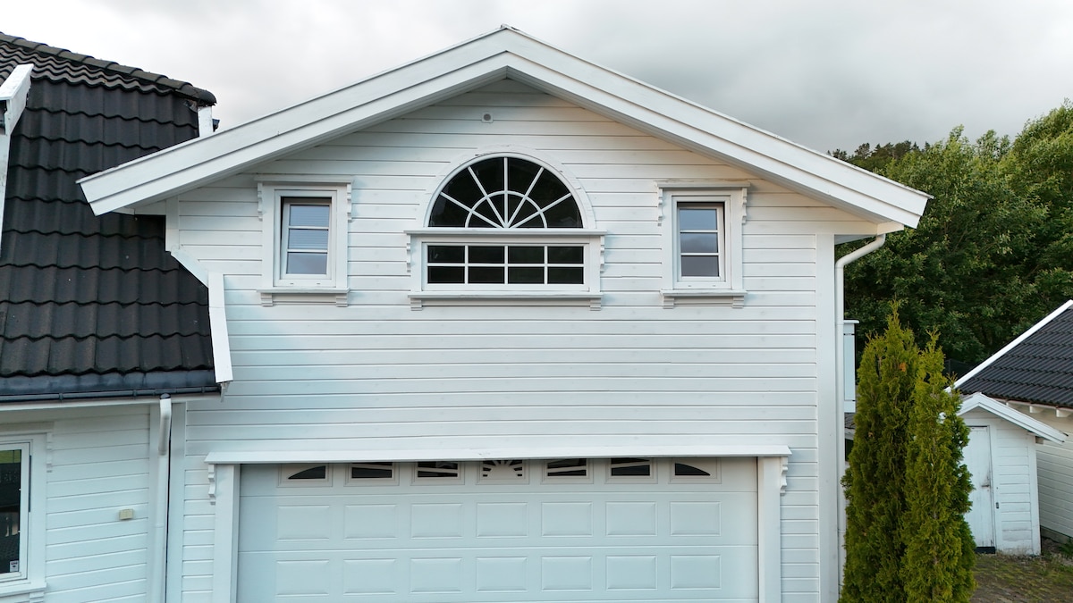 Restored older Sørland house with lots of charm! The house is located by itself in scenic surroundings, with direct access to several popular hiking trails. Access to private gapahuk a small walk away. At the same time, it is only 2 km to Lyngdal city center, the stadium, Sørlandsbadet and the beach on Rosfjord. Best suited for 5 people, but possibility of additional mattress. Contains: 1st floor - living room, dining room, kitchen with pantry, bathroom with shower, entrance and laundry room. 2nd floor - 2 bedrooms and hallway/mezzanine.