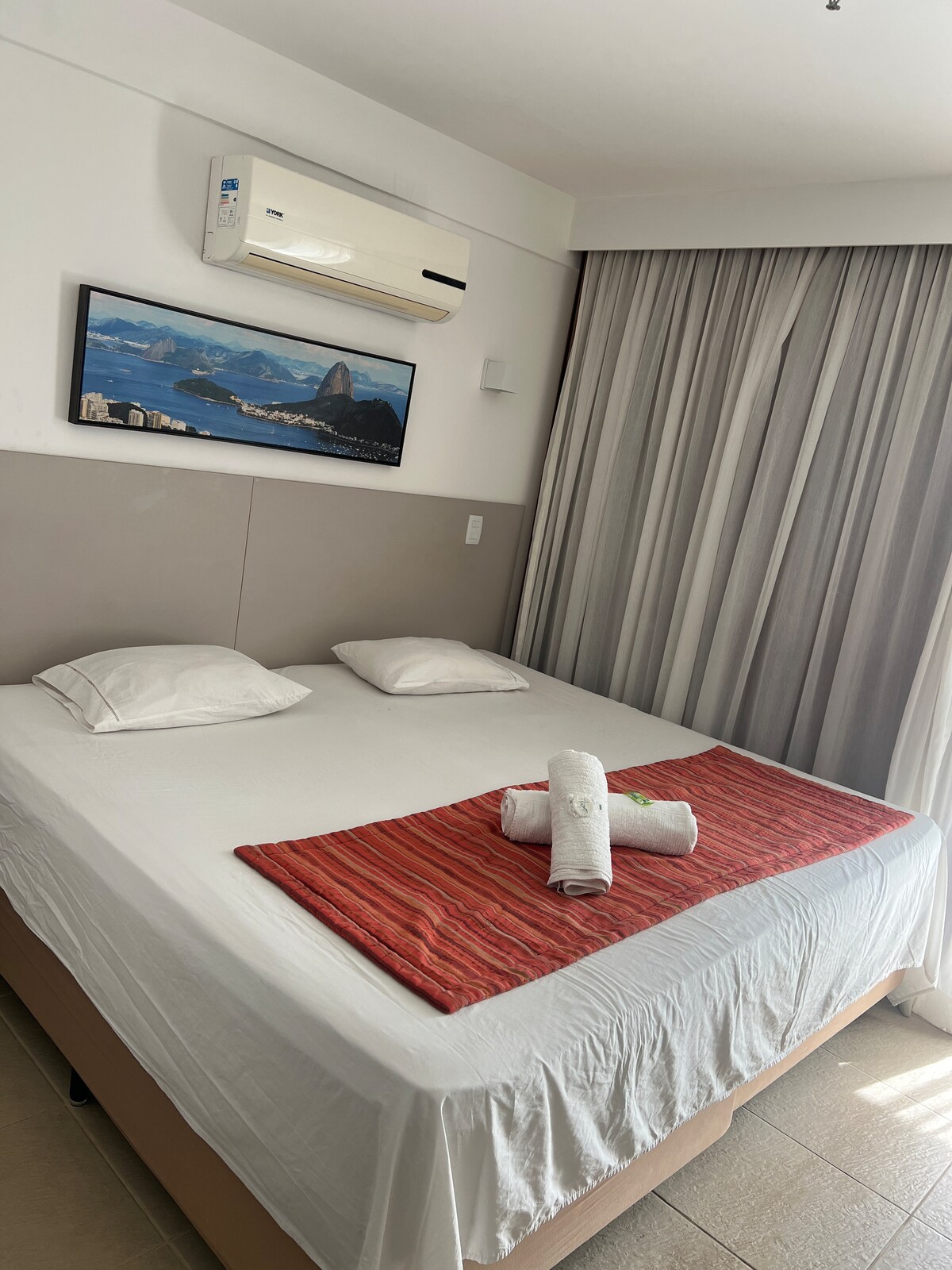 Feel at home at Flat 613 Ramada Macaé. Super cozy locale, made for you. Silent, practical environment, a few meters from the beach, center, pharmacy, market. The Flat accommodates up to 3 guests, as follows: 1 King Bed 1 extra comfortable mattress on the floor (available in case of reservation for 3 people). Free parking Tv Smart Access to the swimming pool, sauna and gym. Make your reservation, we're ready if you need us.