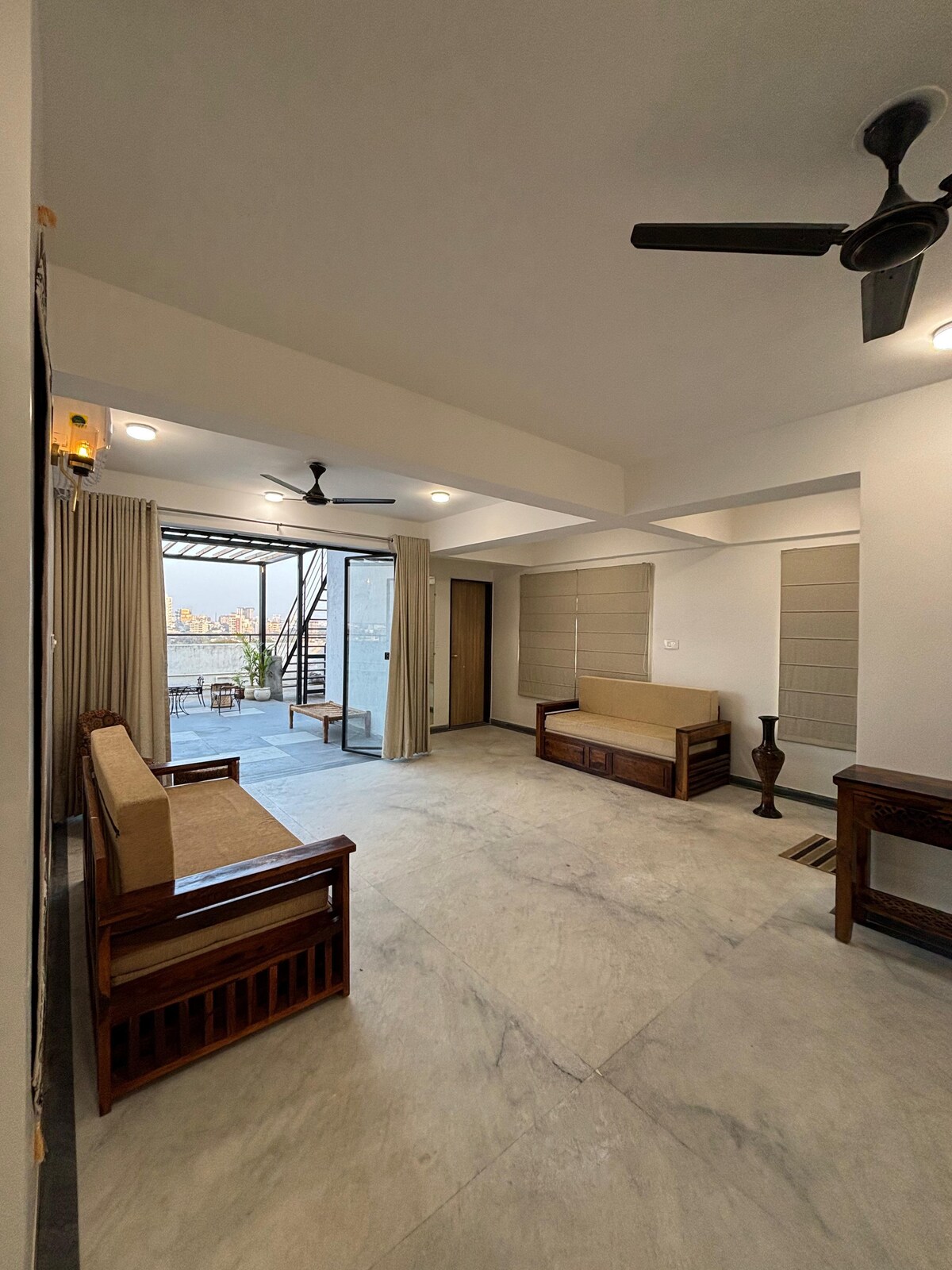 Forget your worries in this spacious and serene space. Our suite room is a perfect abode for business travellers especially for those coming for short stays. Centrally located with the view of the city and modern amenities along with a massive terrace to allow you to take a brisk walk.