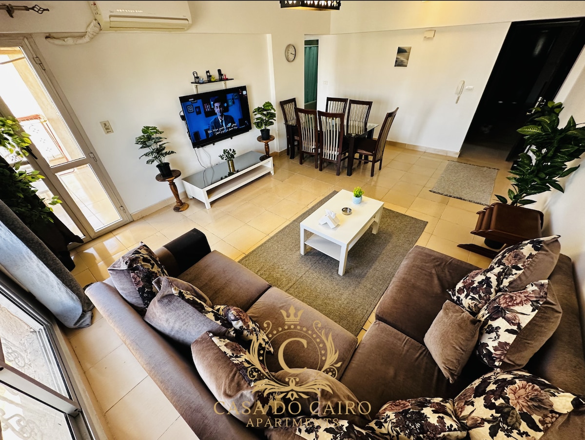 This apartment is fully equipped with everything you may need. Everything is new. Excellent location. Close to Cairo Airport. Close to Heliopolis. Close to New Cairo. Close to the largest mall in Egypt, City Center Elmazza. The apartment is new, the lighting is new and comfortable, you will love to sit in it Very safe, there is a service 24-hour security Sleep mattresses are at the highest level of comfort There is ventilation and sunlight in every room, very healthy