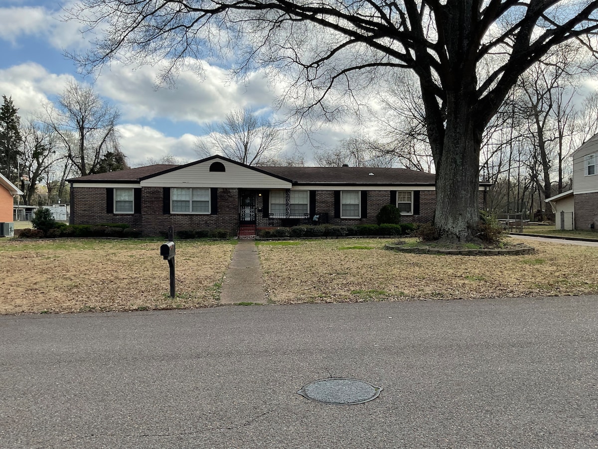 Newly renovated 4 bedroom, 2 bath brick home that sleeps 10. Located just a mile from I40. This home is located on a quiet Cove street with a large fenced in back yard. Has a cute closed off sun room for your furry friends, or a nice little reading nook to enjoy your morning coffee. This home is located to everything you may need during your stay. It is 2 miles away from any shopping or dining. Enjoy streaming your favorite shows or movies from 4 smart TVs in the home.
