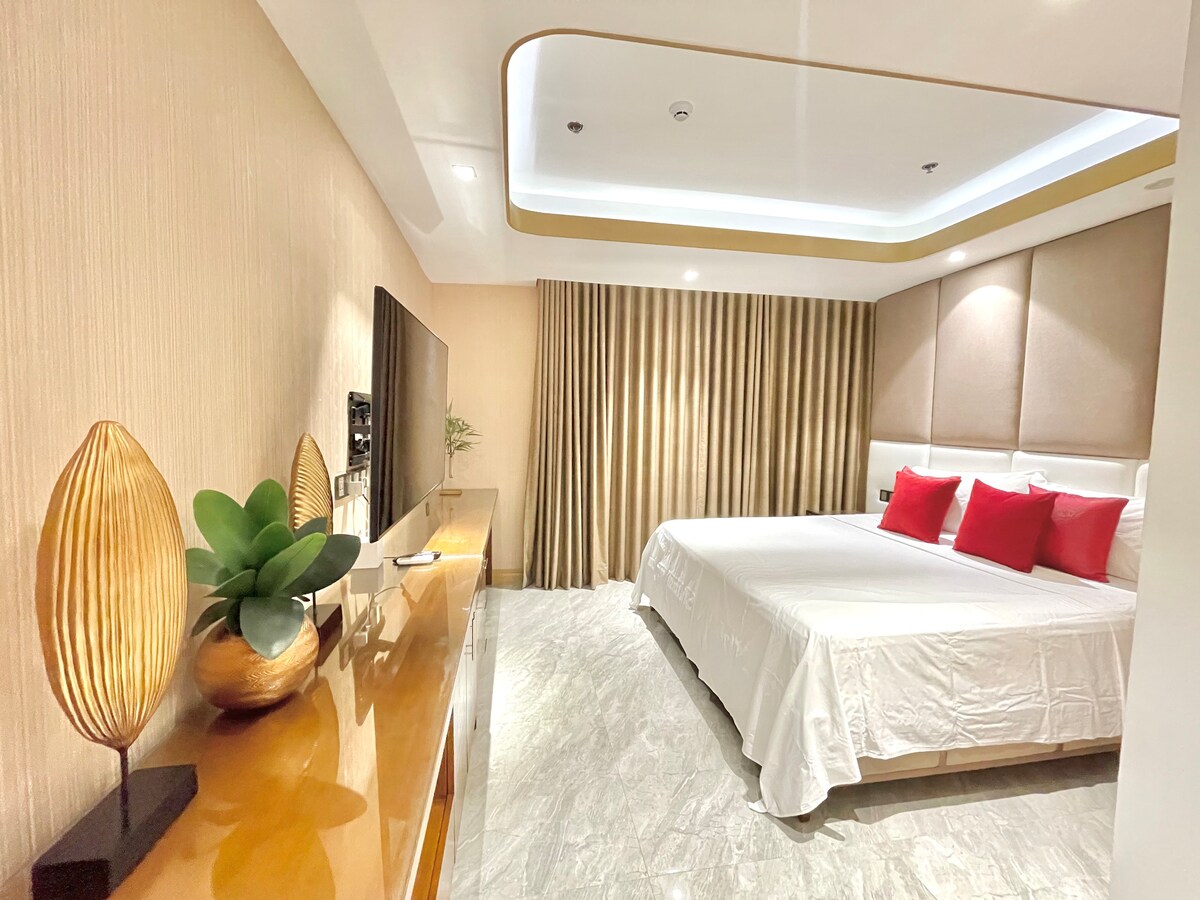 The only condo (TOP FLOOR) with a large window giving an exceptional view of the huge swimming pool and the entire complex. You have access: KANDI TOWER 1-2, TOWER 3, PALACE & GROSVENOR SQUARE. 3 swimming pools (1 huge), 3 gyms, billiard , 3 restaurants, coffee shop, convenience store, massage & hair salon. HD TV 60"& 50" with NETFLIX, 2 internet FIBER & STANDARD, washer/dryer machine, electric stove. Superior furnishings, FREE condo cleaning. The complex is a 5 minutes walk from FIELDS AVENUE.
