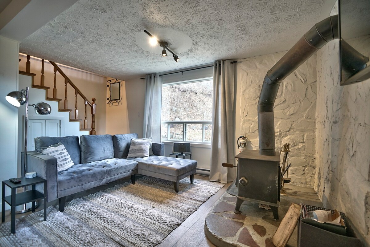 House for 12 people , 4 bedrooms, 5 queens beds plus1 sofa bed , 3,5 bathroom, private hot tub. nice mountain view. Private fire pit. Walking distance to restaurants and shops downtown Bromont. 3-4 minutes driving distance to the ski hill and aquatic park. 5 minutes driving distance to Centre équestre de Bromont. 15 minutes driving distance to Granby zoo. There is heated salted pool from June 1st to September 15th from 9 am to 9pm