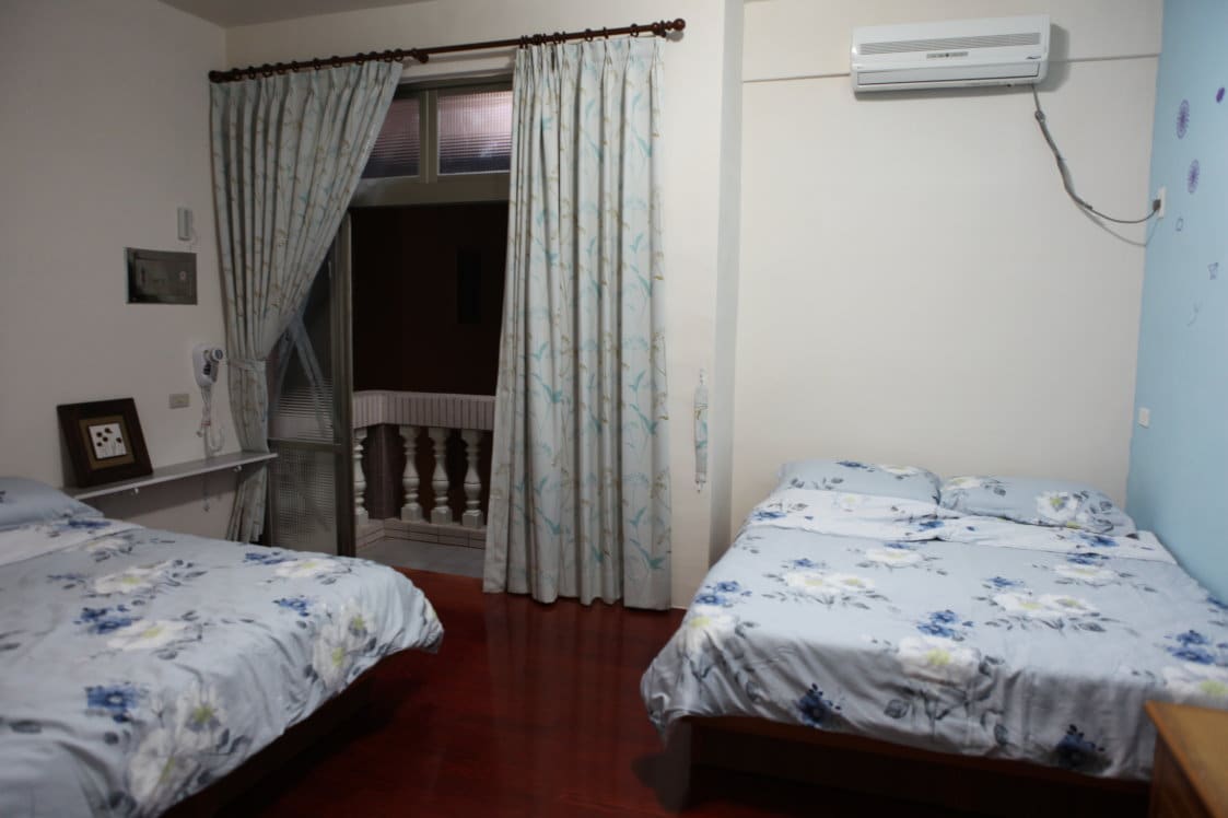 Sky Blue is a room type with two double beds. It is very suitable for families. There is a balcony with a view of the nearby countryside, which can satisfy the childhood memories of adults and children.Because our homestay is very close to the narrow gate beach, we have two washing machines for travelers to use. We have been greatly admired by our guests. We have a (home) atmosphere. We welcome you to our home in Penghu for your vacation.