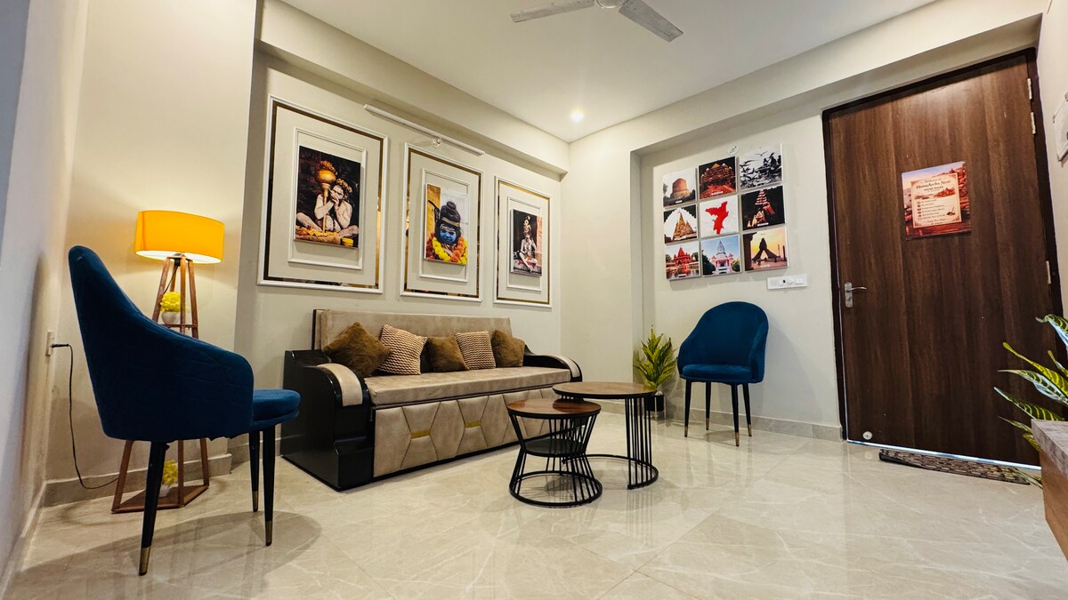 Step into a spacious, calm 3BHK apartment designed for families and small groups who value comfort, privacy, and a peaceful stay in Varanasi. Enjoy warm interiors, air-conditioned bedrooms, a cozy living and dining space, and a fully functional kitchen — everything you need to unwind after exploring the city. Whether you’re visiting with family, staying longer, traveling internationally, or coming as a group, you get the comfort of a private apartment to yourself. Unmarried couples welcome.