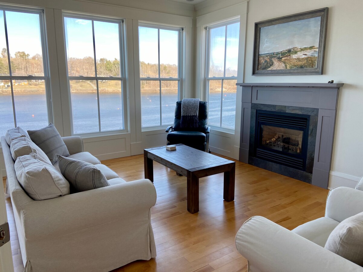 Enjoy our lovely and spacious oceanfront home with port views to the iconic churches of Mahone Bay and starboard views past Strum Island to the open ocean. Sailboats bob at anchor just beyond our decks. Stroll out the back door to reach cafes, bookstores, the brewpub, village pub, restaurants and civic marina all within minutes. We pay diligent attention to cleaning protocols for your safety.