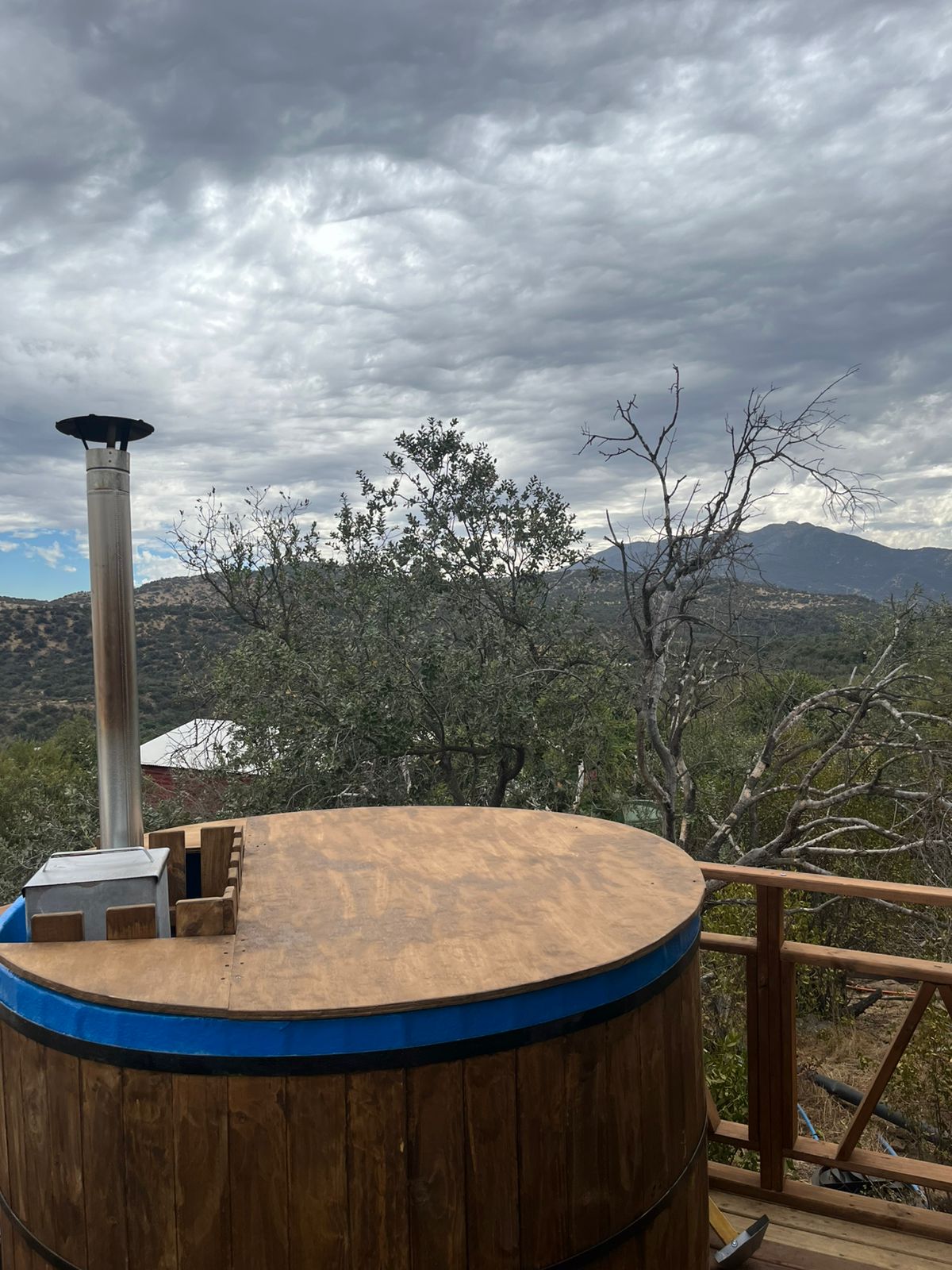 Escape to a unique retreat just minutes from Santiago. Enjoy a cozy cabin with a wood-fired hot tub, ideal for relaxing under the stars. It features a bedroom, sofa bed, fully equipped kitchen, private bathroom, and a natural setting with stunning views. Includes a simple breakfast to start your day. Perfect for unwinding, relaxing, and enjoying a different kind of experience.