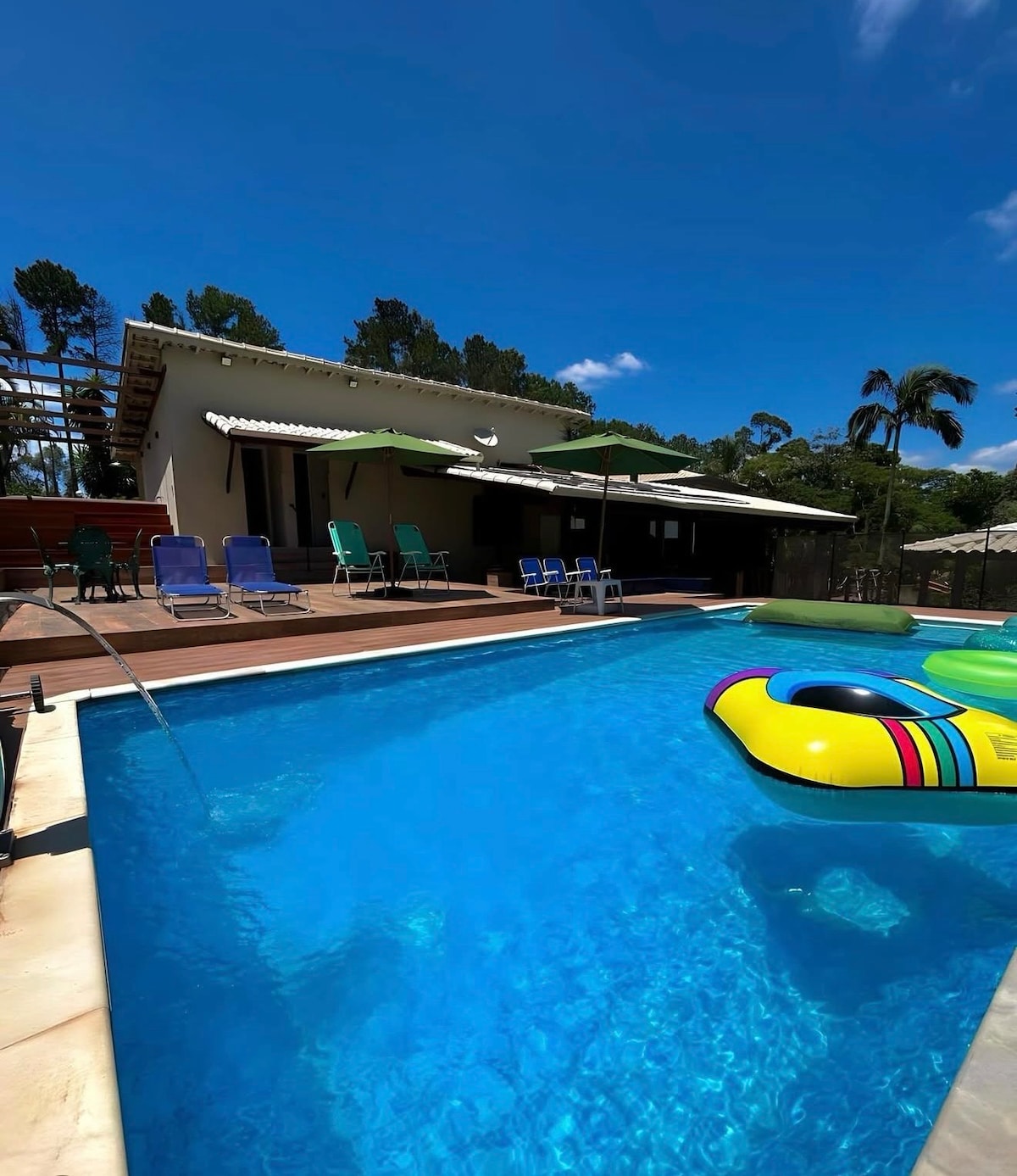 Come celebrate your birthday at our farm, the cake is on us... Wonderful farm in one of the most sought-after gated communities in the region, just 35 minutes from the capital of São Paulo. It has 7 bedrooms, 3 of which are en-suites, a dining room, TV room, living room, game room, 10x5 swimming pool, large heated Jacuzzi, and a multi-sport court! We charge a fee for using the heater.