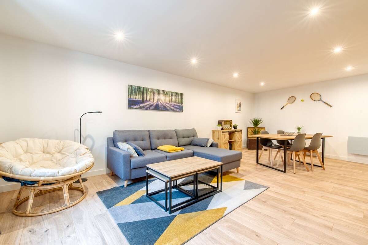 Modern and bright apartment, perfect for travelers and workers on the go. It offers a fully equipped open kitchen, a comfortable living room with dining area, as well as a separate bedroom for privacy. The bathroom has a walk-in shower for optimal comfort. Located in a quiet area, close to shops, this apartment offers a pleasant setting for a convenient and relaxing stay, whether for work or leisure.