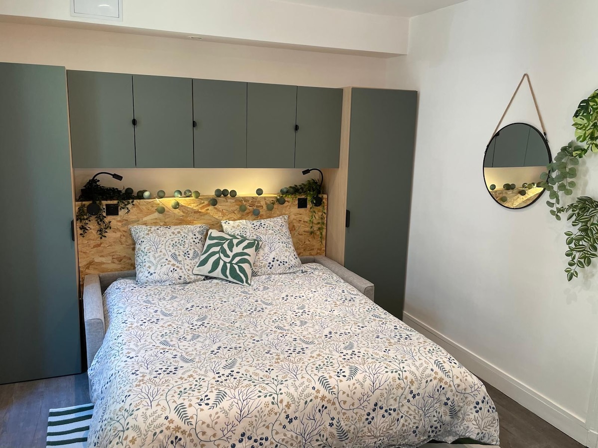 Escape to this cozy studio in Maisons-Alfort, perfect for a peaceful stay on the outskirts of Paris. After a day in the capital, relax in this modern and elegant cocoon. Just minutes from the metro (line 8), enjoy the tranquility of a charming neighborhood while staying connected to the Parisian buzz. Comfort, style and serenity await you.